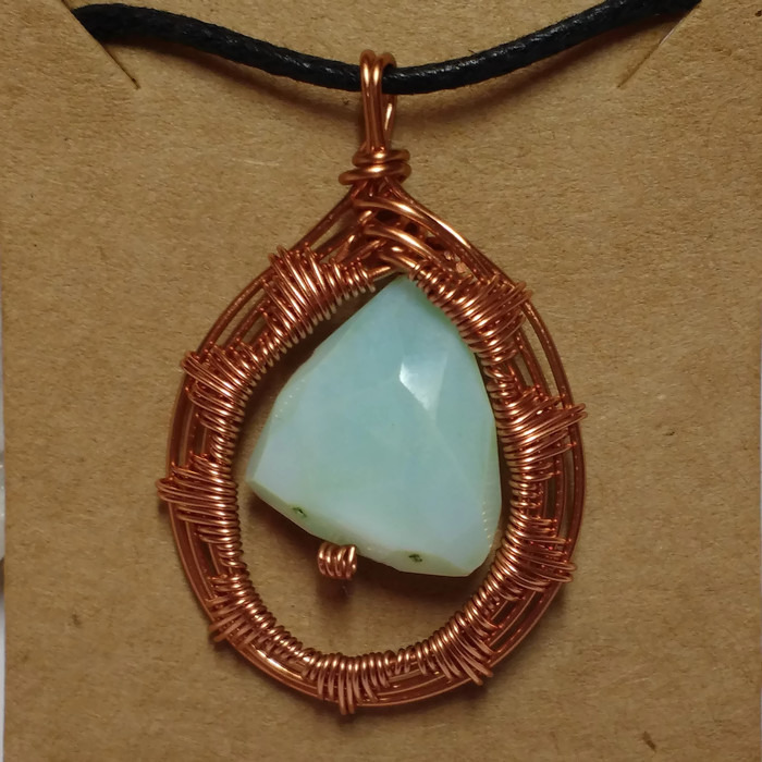 Colgante de amazonita facetada engarzado en alambre de cobre