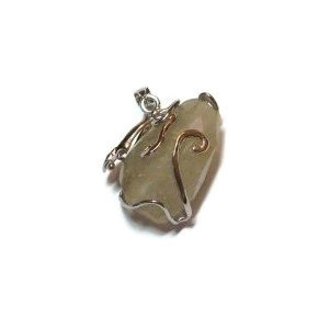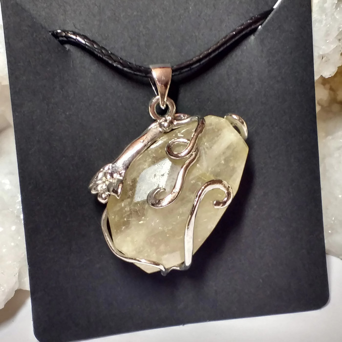 Colgante de fornitura de acero montada con pieza de cuarzo facetada.