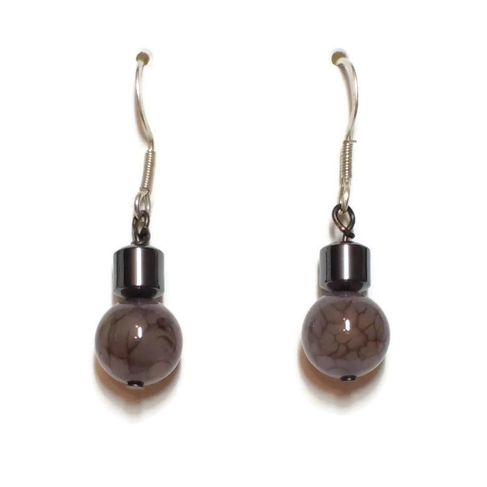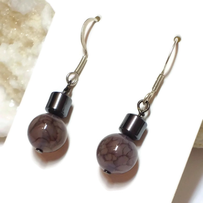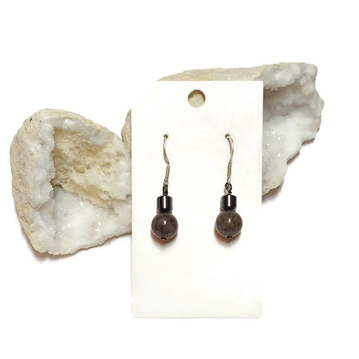 Pendientes de plata con hematite y preciosa esfera de mineral.