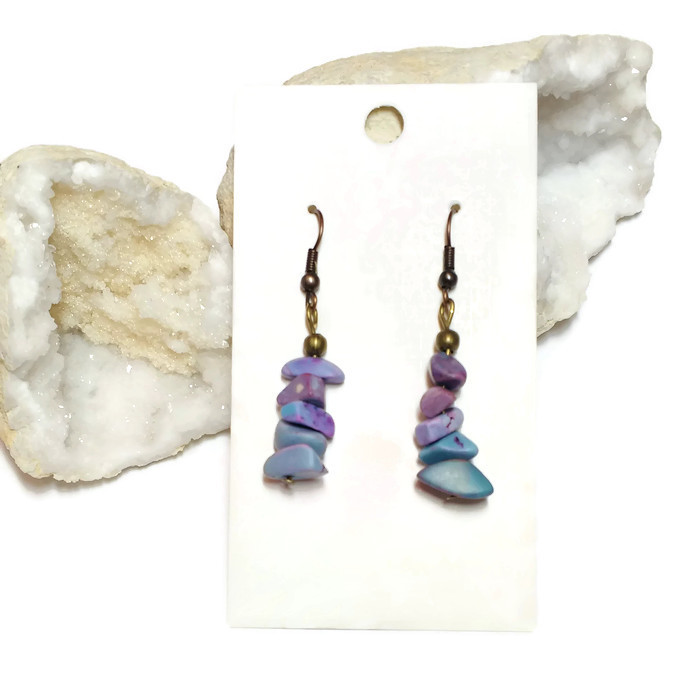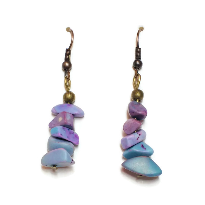 Pendientes de chip de mineral montados en fornitura de cobre.